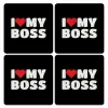 I LOVE MY BOSS, ΣΕΤ 4 Σουβέρ ξύλινα τετράγωνα (9cm)
