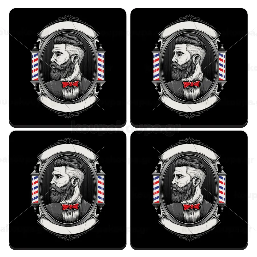 Barber shop, ΣΕΤ 4 Σουβέρ ξύλινα τετράγωνα (9cm)
