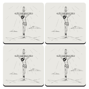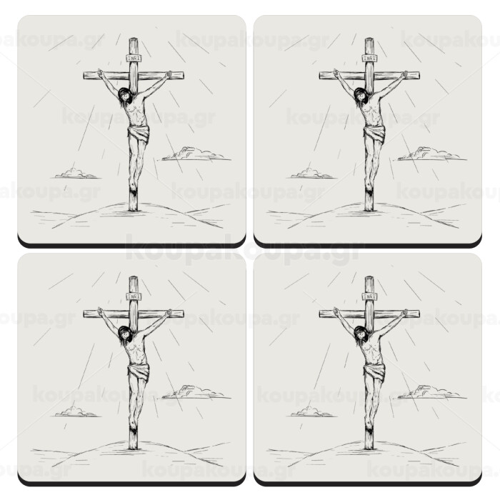 Jesus Christ , ΣΕΤ 4 Σουβέρ ξύλινα τετράγωνα (9cm)