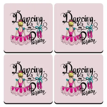 Dancing is my Passion, ΣΕΤ 4 Σουβέρ ξύλινα τετράγωνα (9cm)