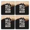 Will Belay For Beer, ΣΕΤ 4 Σουβέρ ξύλινα τετράγωνα (9cm)