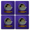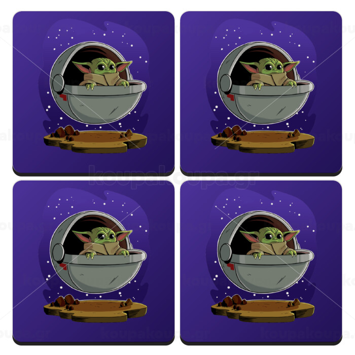 Baby Yoda mandalorian, ΣΕΤ 4 Σουβέρ ξύλινα τετράγωνα (9cm)