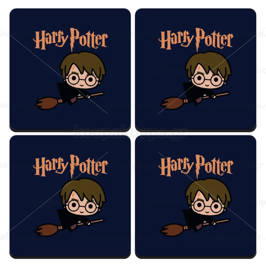 Harry potter kid, ΣΕΤ 4 Σουβέρ ξύλινα τετράγωνα (9cm)