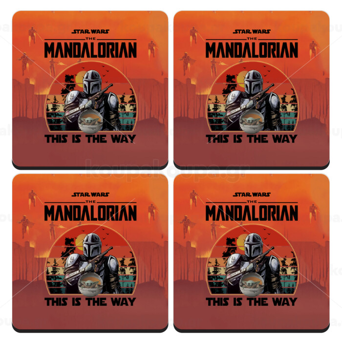 Mandalorian, ΣΕΤ 4 Σουβέρ ξύλινα τετράγωνα (9cm)
