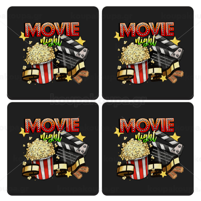 Movie night, ΣΕΤ 4 Σουβέρ ξύλινα τετράγωνα (9cm)