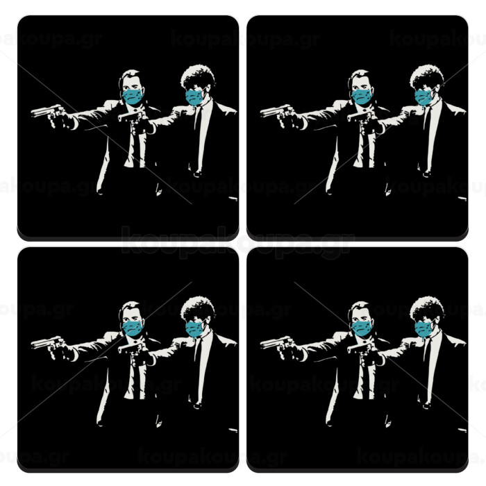 Pulp Fiction guns, ΣΕΤ 4 Σουβέρ ξύλινα τετράγωνα (9cm)
