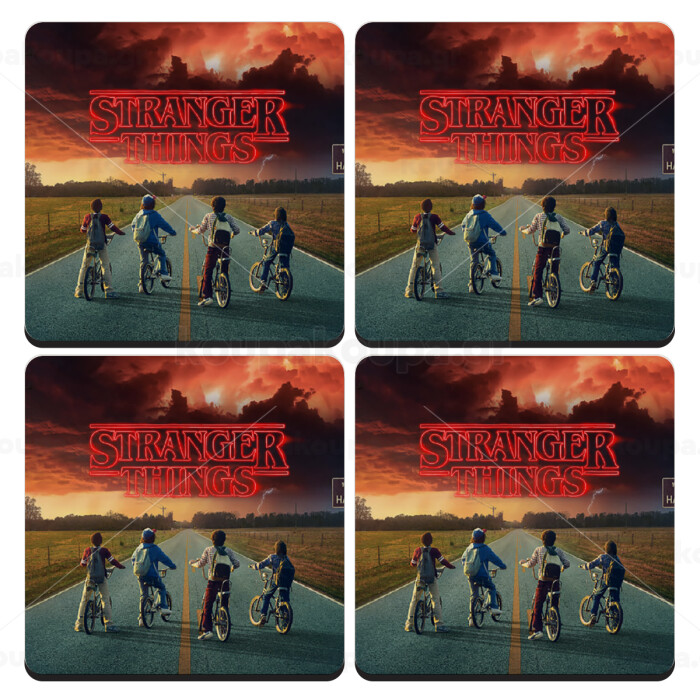 Stranger Things city, ΣΕΤ 4 Σουβέρ ξύλινα τετράγωνα (9cm)
