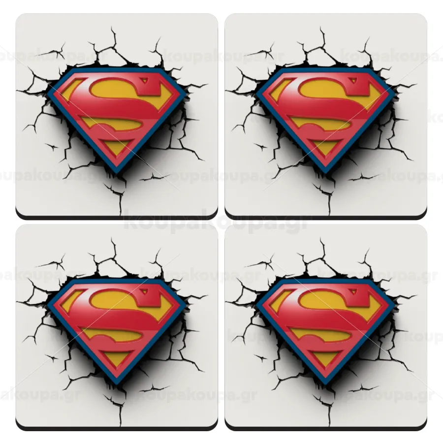 Superman cracked, ΣΕΤ 4 Σουβέρ ξύλινα τετράγωνα (9cm)