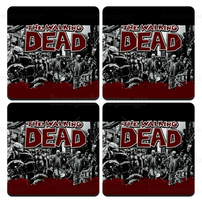 The walking dead comic drawing zombie, ΣΕΤ 4 Σουβέρ ξύλινα τετράγωνα (9cm)