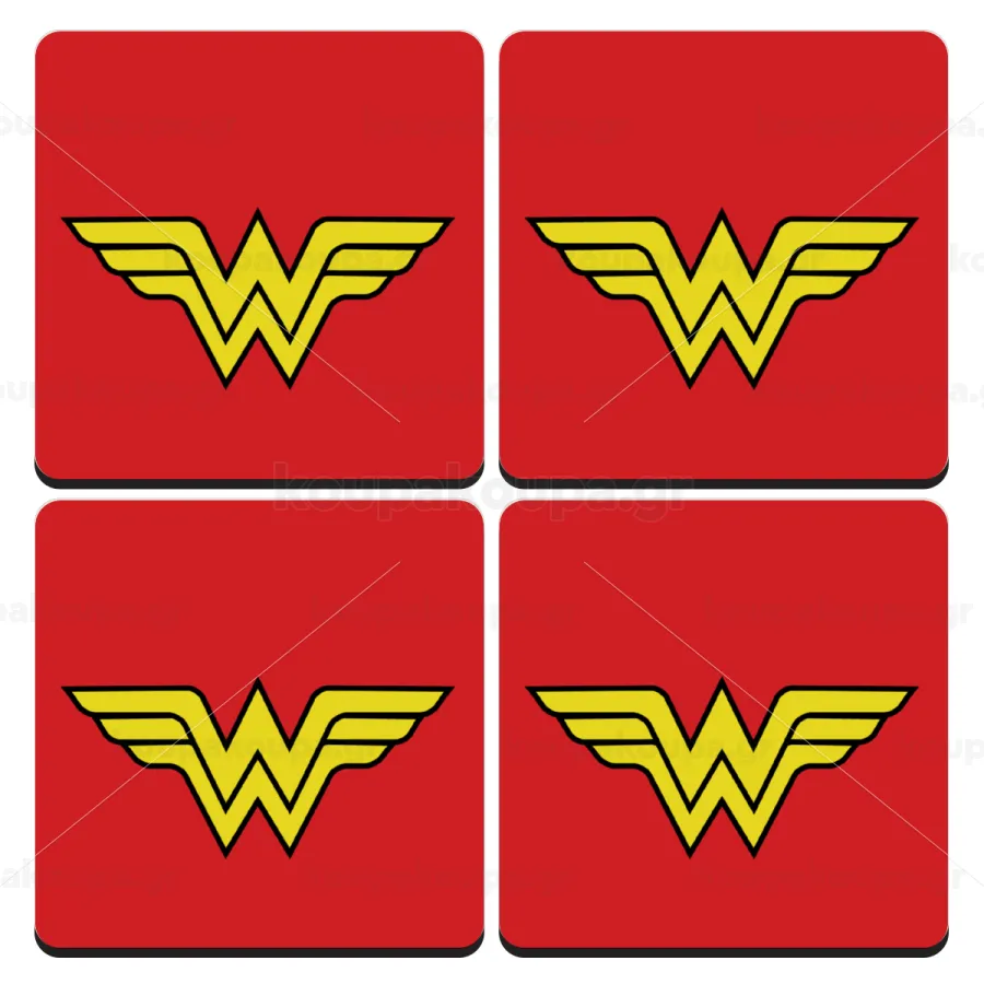 Wonder woman, ΣΕΤ 4 Σουβέρ ξύλινα τετράγωνα (9cm)