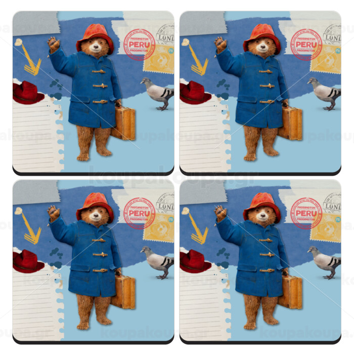 Αρκουδάκι Πάντινγκτον, ΣΕΤ 4 Σουβέρ ξύλινα τετράγωνα (9cm)