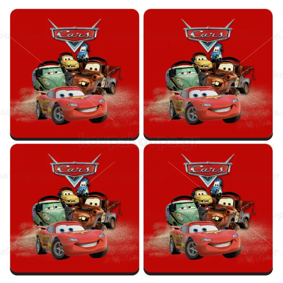 Αυτοκίνητα, ΣΕΤ 4 Σουβέρ ξύλινα τετράγωνα (9cm)