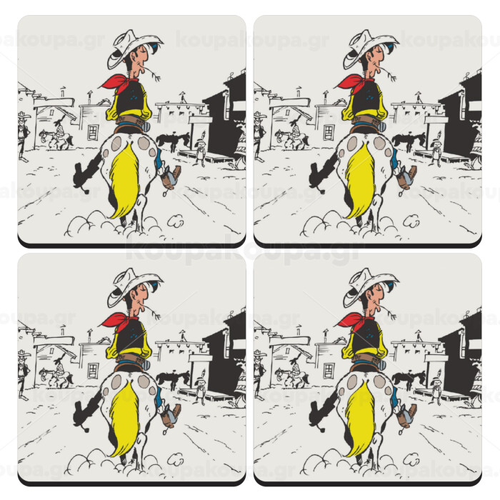 Λούκυ Λουκ comic, ΣΕΤ 4 Σουβέρ ξύλινα τετράγωνα (9cm)