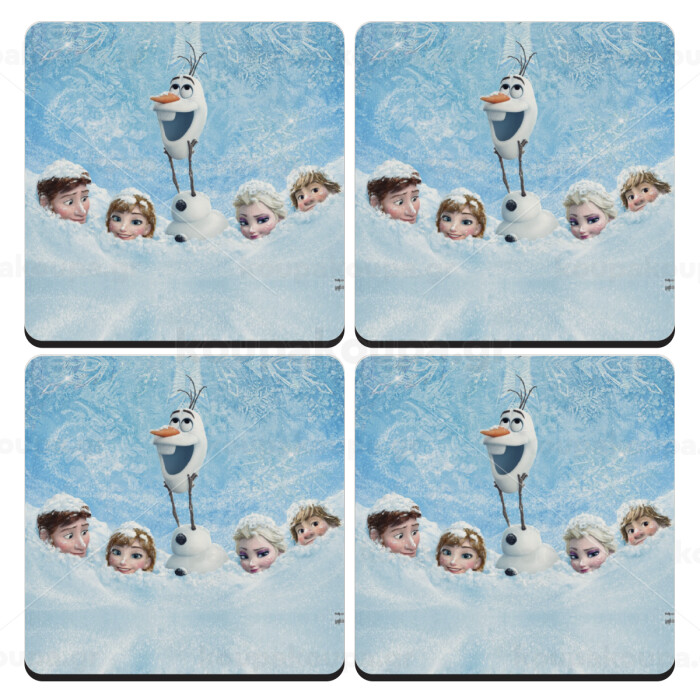 Ψυχρά κι ανάποδα Όλαφ και οι φίλοι του, ΣΕΤ 4 Σουβέρ ξύλινα τετράγωνα (9cm)