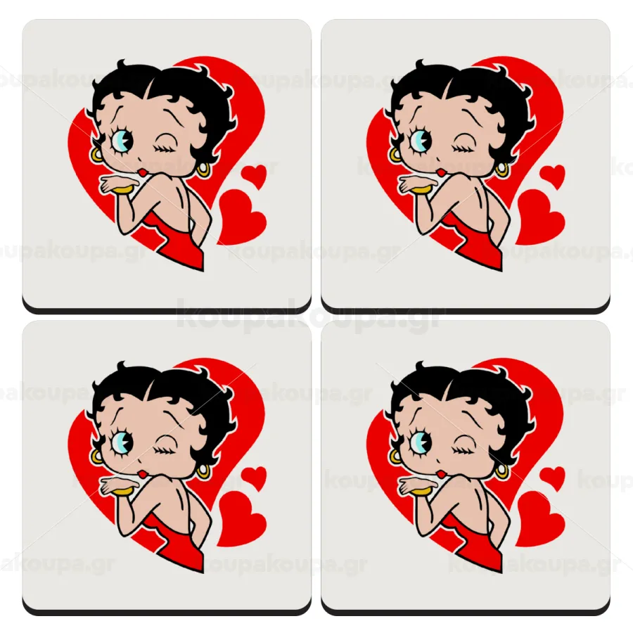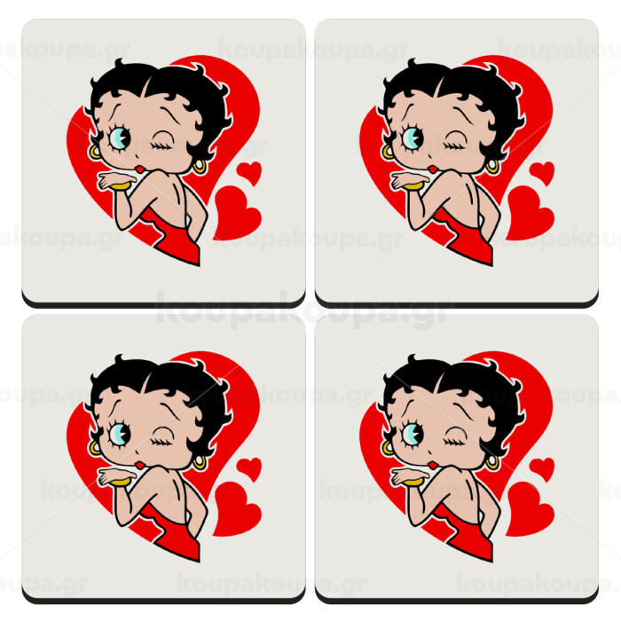Betty Boop, ΣΕΤ 4 Σουβέρ ξύλινα τετράγωνα (9cm)