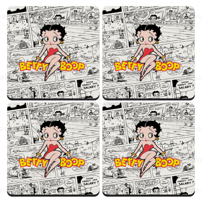 Betty Boop, ΣΕΤ 4 Σουβέρ ξύλινα τετράγωνα (9cm)