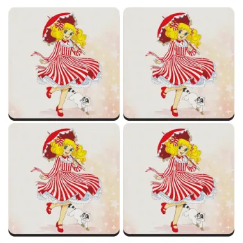 Candy, ΣΕΤ 4 Σουβέρ ξύλινα τετράγωνα (9cm)