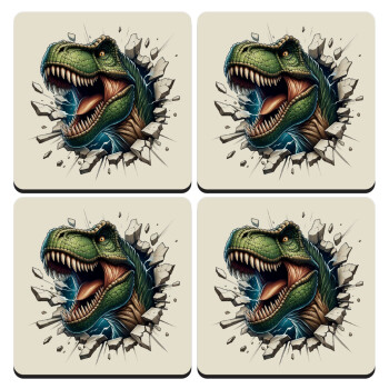 Dinosaur break wall, ΣΕΤ 4 Σουβέρ ξύλινα τετράγωνα (9cm)