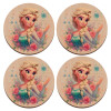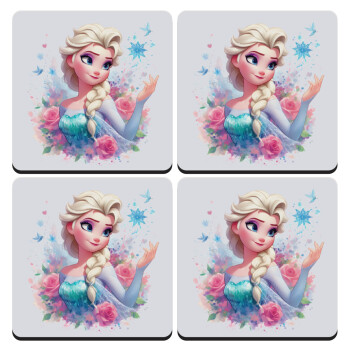 Elsa Princess, ΣΕΤ 4 Σουβέρ ξύλινα τετράγωνα (9cm)