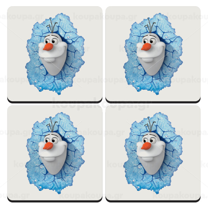 Frozen Olaf, ΣΕΤ 4 Σουβέρ ξύλινα τετράγωνα (9cm)