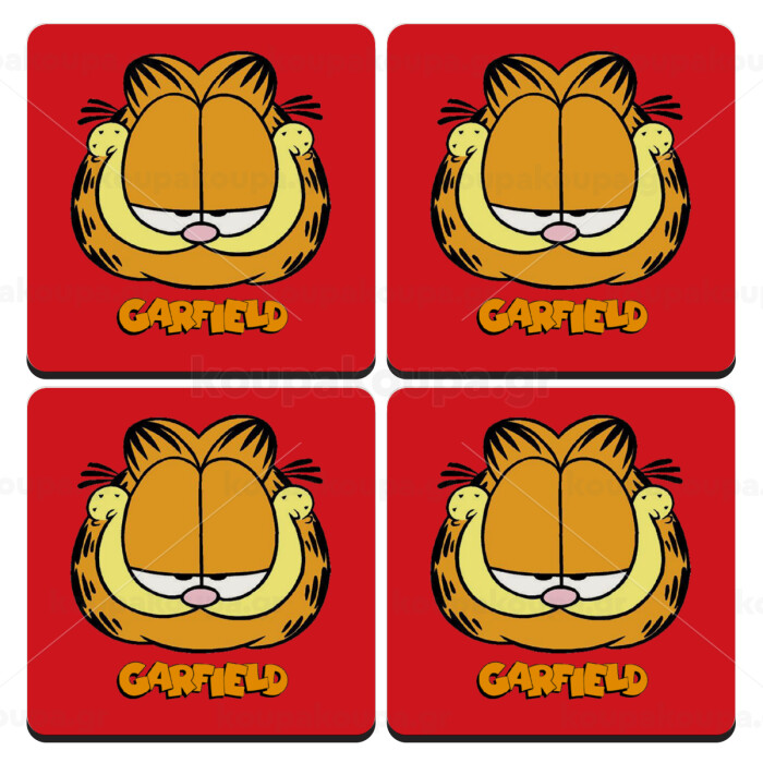 Garfield, ΣΕΤ 4 Σουβέρ ξύλινα τετράγωνα (9cm)