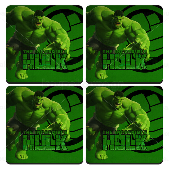 Hulk, ΣΕΤ 4 Σουβέρ ξύλινα τετράγωνα (9cm)