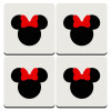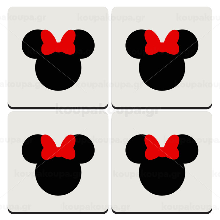 Minnie head, ΣΕΤ 4 Σουβέρ ξύλινα τετράγωνα (9cm)
