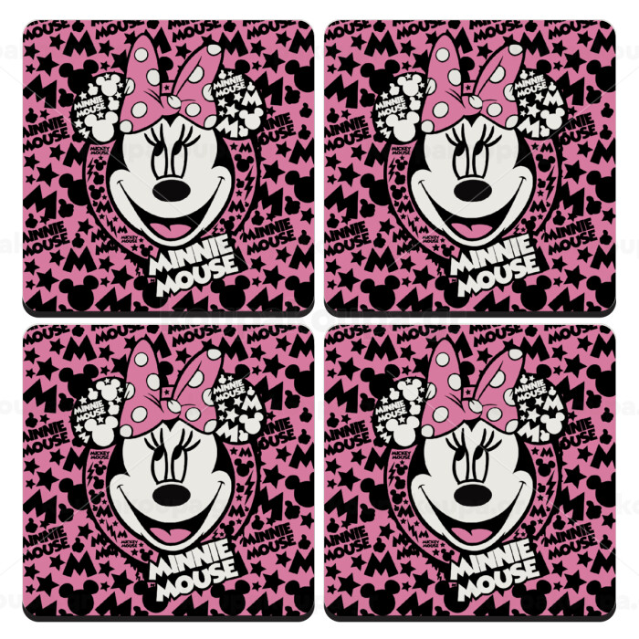 Minnie mouse, ΣΕΤ 4 Σουβέρ ξύλινα τετράγωνα (9cm)