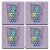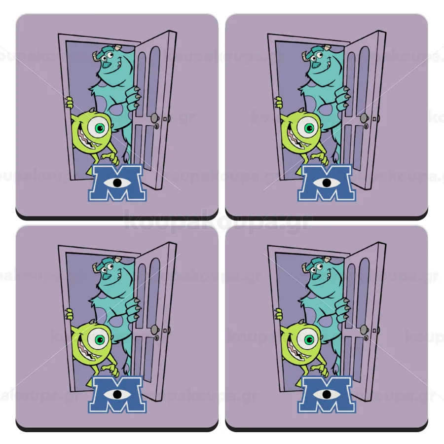 Monster inc, ΣΕΤ 4 Σουβέρ ξύλινα τετράγωνα (9cm)