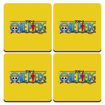 Onepiece logo, ΣΕΤ 4 Σουβέρ ξύλινα τετράγωνα (9cm)