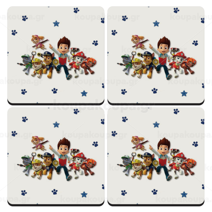 paw patrol, ΣΕΤ 4 Σουβέρ ξύλινα τετράγωνα (9cm)
