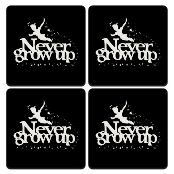 Peter pan, Never Grow UP, ΣΕΤ 4 Σουβέρ ξύλινα τετράγωνα (9cm)