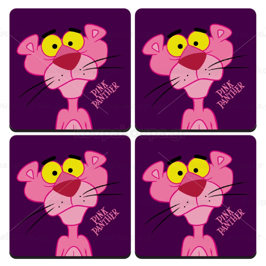 Pink Panther cartoon, ΣΕΤ 4 Σουβέρ ξύλινα τετράγωνα (9cm)