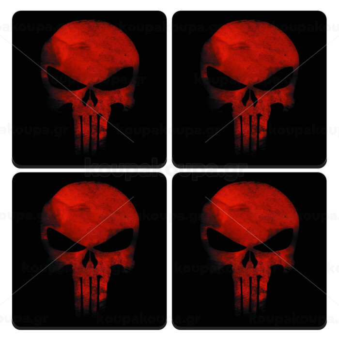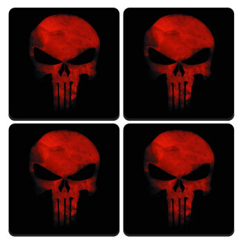 Red skull, ΣΕΤ 4 Σουβέρ ξύλινα τετράγωνα (9cm)