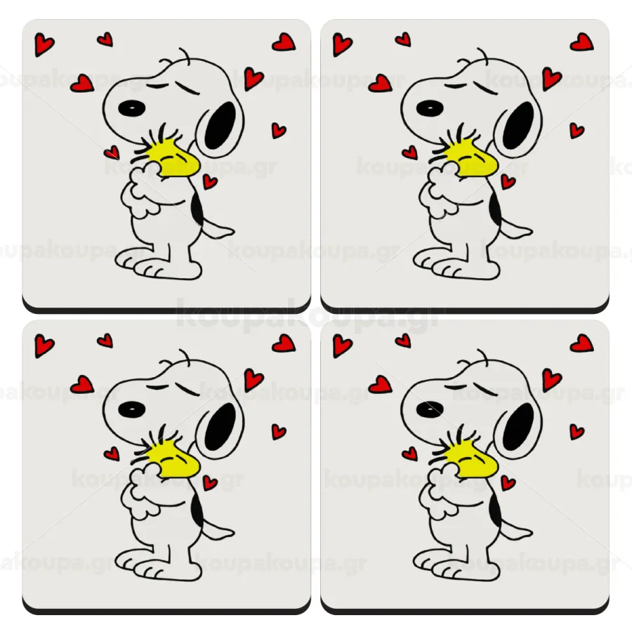 Snoopy Love, ΣΕΤ 4 Σουβέρ ξύλινα τετράγωνα (9cm)
