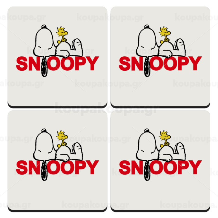 Snoopy sleep, ΣΕΤ 4 Σουβέρ ξύλινα τετράγωνα (9cm)