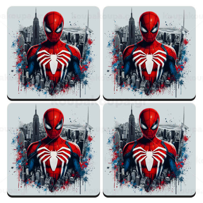 Spiderman City, ΣΕΤ 4 Σουβέρ ξύλινα τετράγωνα (9cm)