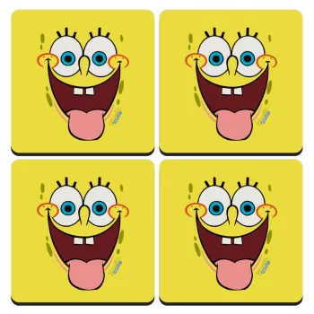 Μπομπ Σφουγγαράκης χαμόγελο, ΣΕΤ 4 Σουβέρ ξύλινα τετράγωνα (9cm)