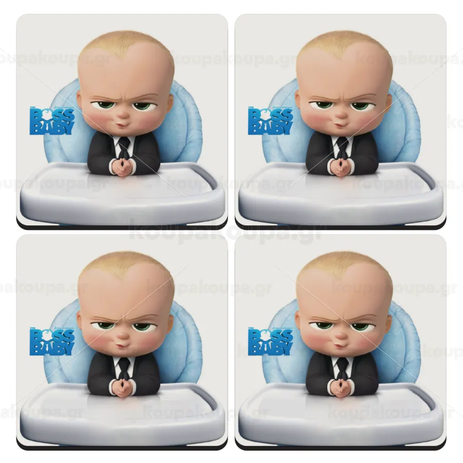 The boss baby, ΣΕΤ 4 Σουβέρ ξύλινα τετράγωνα (9cm)