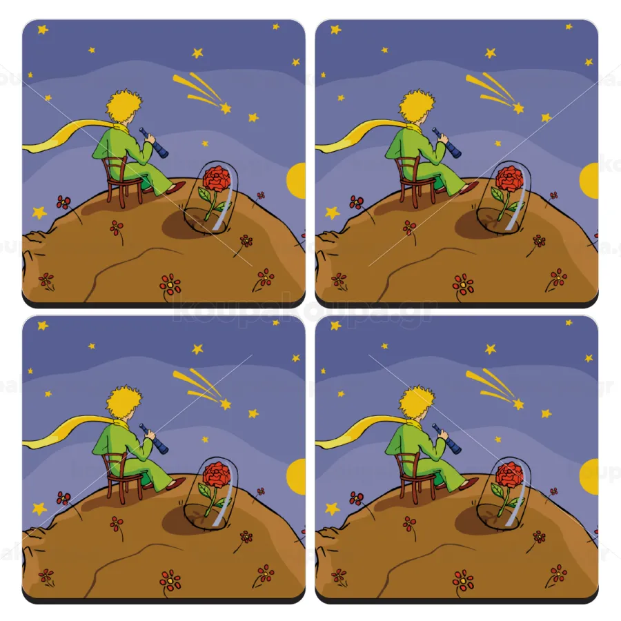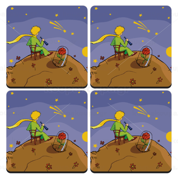 Ο μικρός πρίγκιπας planet, ΣΕΤ 4 Σουβέρ ξύλινα τετράγωνα (9cm)