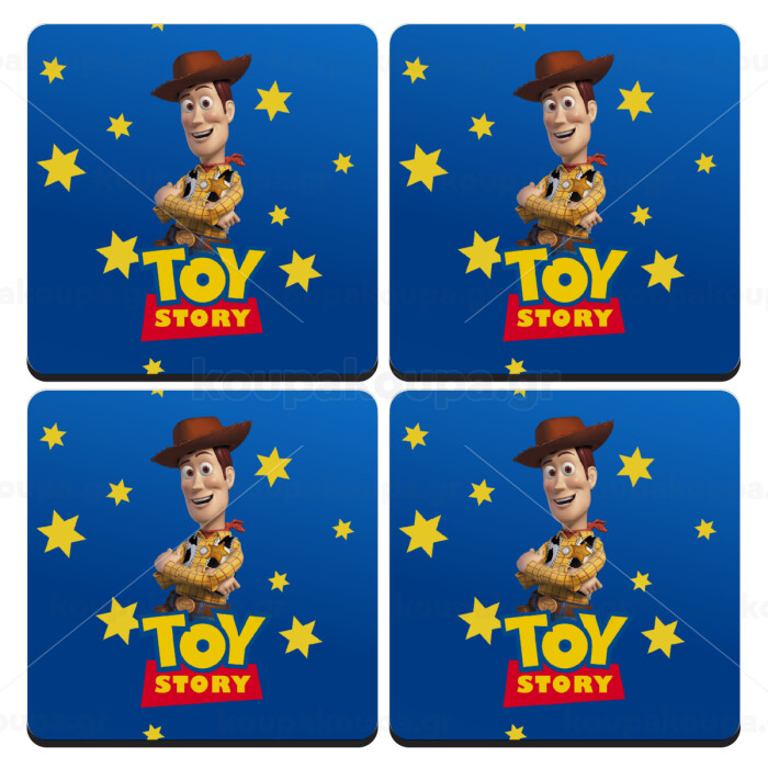 Woody cowboy, ΣΕΤ 4 Σουβέρ ξύλινα τετράγωνα (9cm)