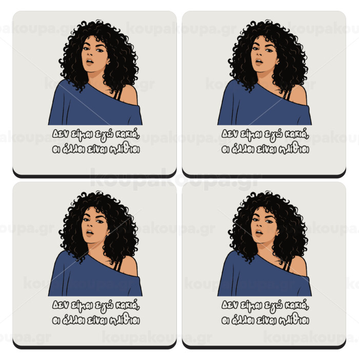 Δεν είμαι εγώ κακιά, ΣΕΤ 4 Σουβέρ ξύλινα τετράγωνα (9cm)