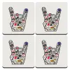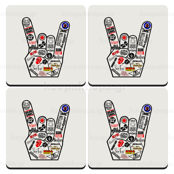 Best Rock Bands hand, ΣΕΤ 4 Σουβέρ ξύλινα τετράγωνα (9cm)