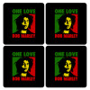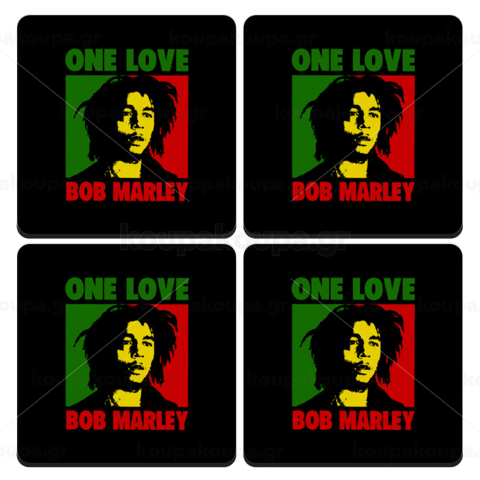 Bob marley, one love, ΣΕΤ 4 Σουβέρ ξύλινα τετράγωνα (9cm)
