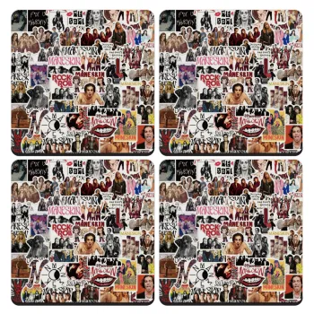 Maneskin stickers, ΣΕΤ 4 Σουβέρ ξύλινα τετράγωνα (9cm)