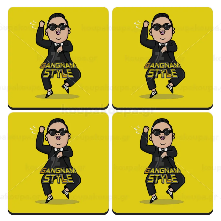 PSY - GANGNAM STYLE, ΣΕΤ 4 Σουβέρ ξύλινα τετράγωνα (9cm)