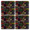 Rock Bands, ΣΕΤ 4 Σουβέρ ξύλινα τετράγωνα (9cm)