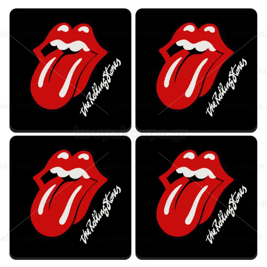 The rolling stones, ΣΕΤ 4 Σουβέρ ξύλινα τετράγωνα (9cm)