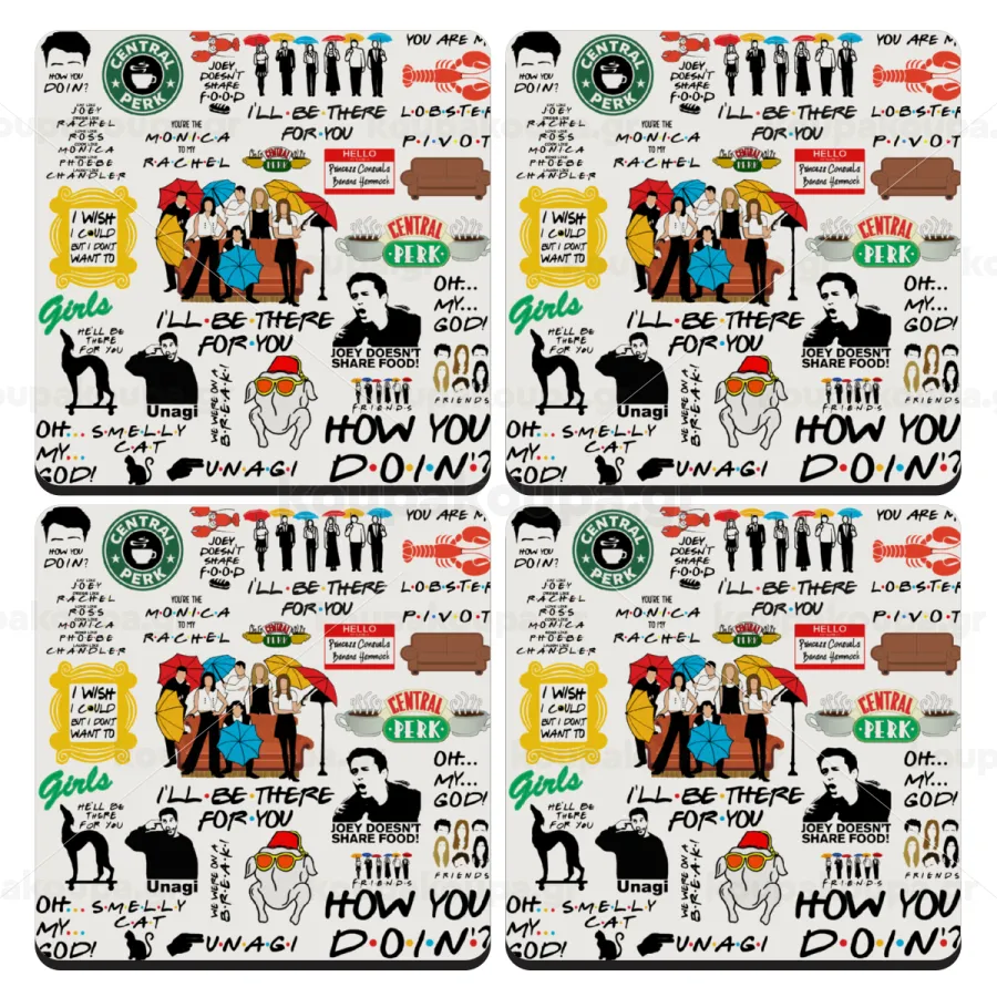 Friends, ΣΕΤ 4 Σουβέρ ξύλινα τετράγωνα (9cm)