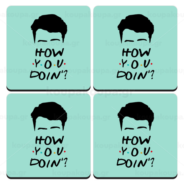 Friends how you doin?, ΣΕΤ 4 Σουβέρ ξύλινα τετράγωνα (9cm)